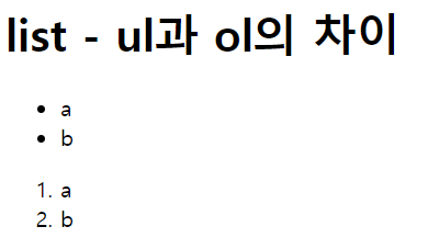<h1>list - ul과 ol의 차이</h1>
