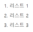 ol은 ordered list (순서가 있는 리스트)의 줄임말입니다. ol태그로 감싼 리스트는 숫자로 순서를 매기는 머릿 기호가 붙습니다.