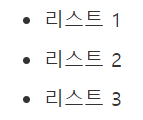 ul은 unordered list (순서가 없는 리스트)의 줄임말입니다. ul태그로 감싼 리스트는 다음과 같은 머릿 기호가 붙습니다.