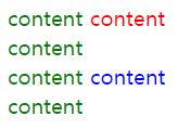class명이 redbox인 div태그와 bluebox인 div태그에 모두 class명이 content인 span 태그를 자식 요소와 자손 요소로 각각 넣어봤습니다.