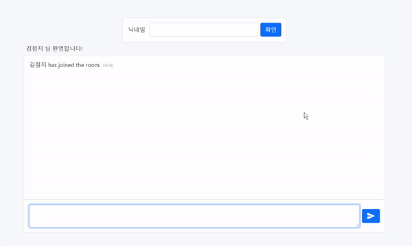 이 컴포넌트는 메시지 입력창에 입력하고 있는 텍스트를 state로 관리합니다. 그리고 전송 버튼을 누르면 handleSendMessage함수가 실행되어 SEND_MESSAGE 이벤트를 nickname과 입력한 텍스트 데이터와 함께 소켓 서버로 emit합니다. ChatRoom에서 이 컴포넌트를 import 해줍니다.