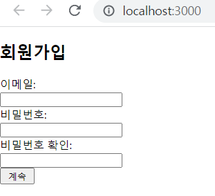 localhost:3000에 접속했을 때, 우리가 만든 화면이 정상적으로 보여야 합니다.