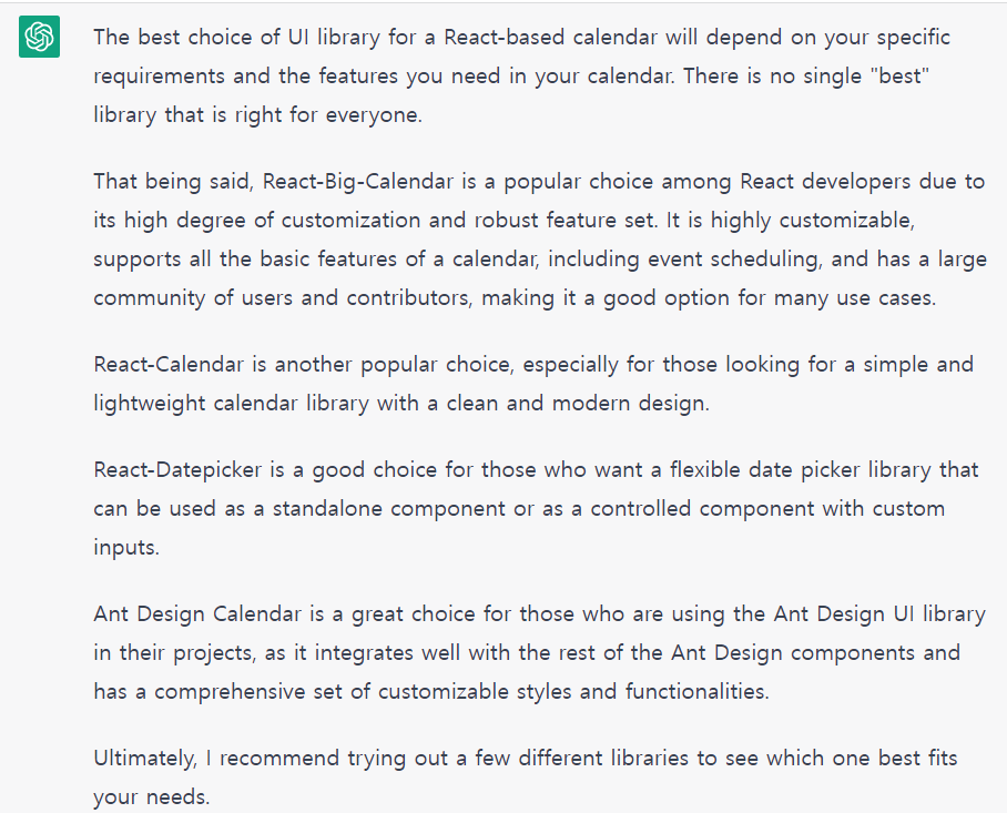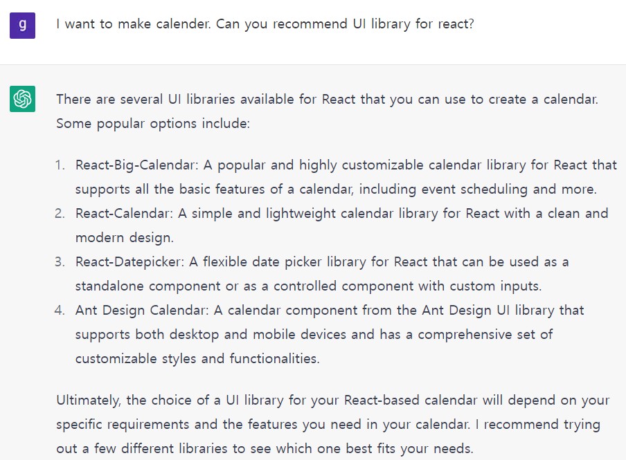 예를 들어 달력을 만들고 싶은데 적합한 리액트 UI라이브러리를 찾아봤습니다.