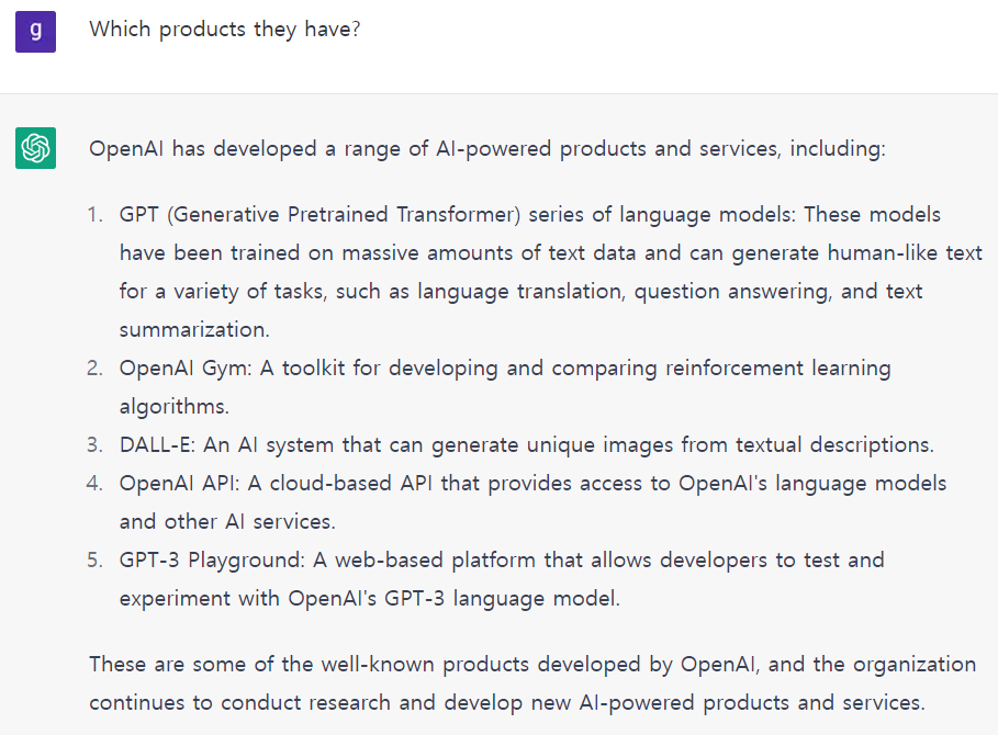 대화는 한 번의 응답으로 끝나는 게 아니라, 지속적으로 이어나갈 수 있으며 문맥에 따른 후속 대답을 끌어낼 수 있습니다.