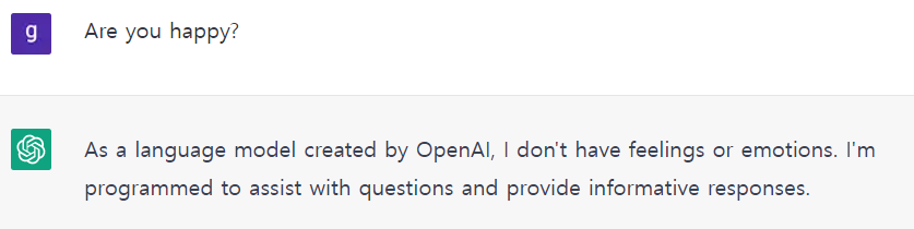 ChatGPT는 주로 정보를 전달하는 대화에 능숙하고 실제로 그렇게 활용하라고 만들어졌습니다. 사실과 정보의 전달에는 강한 강점을 가지고 있으나, 감정적인 대화는 불가능하여 이런 대화를 시도하면 거절의 답변을 들을 수 있습니다.